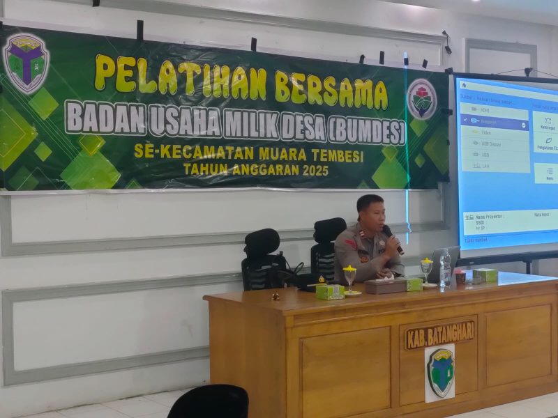 Lintasjambi.co.id.Muara Tembesi.- Kapolsek Muara Tembesi ,”Iptu Sugeng. SH. menjadi pemateri (NaraSumber) di Pelatihan Bersama Badan Usaha milik Desa (Bumdes) se-kecamatan muara Tembesi, yang bertempat di Aula kantor Camat Kecamatan Muara Tembesi, pada rabu 19/11/2025.